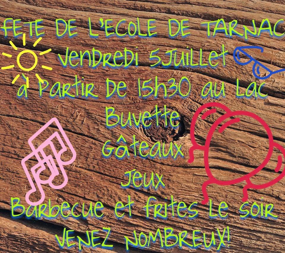 Plan d'esu TarnacL'année scolaire se terminera au bord de l'eau dans une belle ambiance festive , à partir de 15h30.